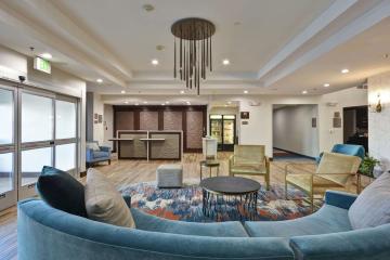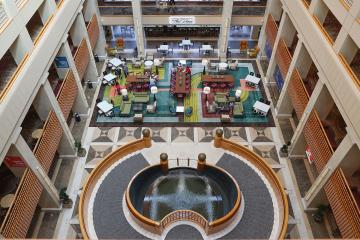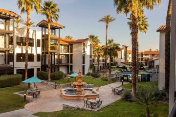 The Embassy Suites La Quinta - Hotel & Spa is the ideal place for relaxing spa breaks, leisurely vacations and local business trips. This all-suite hotel is located in the picturesque Palm Springs Valley, playing host to some of the most spectacular golf courses in the country. Relax in a two-room suite offering thoughtful amenities such as WiFi, two televisions, and telephones in both the living room and bedroom. Enjoy the view of the pool from your patio. The hotel atrium is the heart of this hotel in La Quinta, CA. Enjoy the ambiance of the modern water feature during the complimentary breakfast or Evening Reception*. The open-air atrium is also home to Terra Bistro, serving lunch and dinner daily. This inviting space boasts several seating areas where guests can view the big screen TV or chat with friends, family or colleagues.