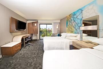 A sandy beach pool complements romantic restaurants and a full-service spa at the family-friendly Renaissance Indian Wells Resort & Spa, A Marriott Lifestyle Hotel. This sprawling resort offers 560 bright and modern rooms with Wi-Fi (surcharge), down comforters, flat-panel TVs, luxury toiletries, plush bathrobes, coffeemakers and private balconies. Find your new favorite hangout at several on-site restaurants and try out nighttime tennis. Get your favorite treatment at the full-service spa and have a seaside experience at the sandy beach pool. Kids can enjoy Camp Oasis programs. Several championship golf courses surround this hotel.