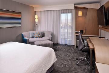 Sparkling-new renovations, plenty of creature comforts, and a simply unbeatable location: the Courtyard Palm Desert is a veritable oasis for guests on business trips, weekend getaways, and family vacations. With a recently renovated lobby, a gorgeous onsite restaurant, The Bistro, and an array of modern amenities including tennis courts, our Palm Desert hotel suits even the most seasoned of travelers. There's a wealth of activity outside our doors, too. Indulge in jaw-dropping views of the Santa Rosa Mountains. Go for par at over 30 golf courses nearby, including Desert Willow Golf Resort, or try your luck at area casinos. A shoppers' paradise awaits nearby at the renowned El Paseo Shopping District, while natural beauty abounds at Mt. San Jacinto, easily accessible by the Palm Springs Aerial Tramway. Come see what's in store at one of the top hotels in Palm Desert.