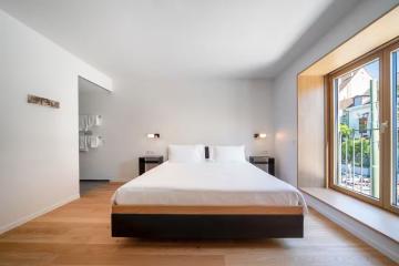 A minute's walk from a tram stop, this offbeat art-themed hotel set in a pair of 18th-century townhouses is 6 minutes' walk from Kunsthalle Basel art gallery and 7 minutes' walk from the Theater Basel. Modern, airy rooms with wood floors feature designer desks and furnishings, free Wi-Fi, flat-screen TVs and Nespresso machines. Upgraded rooms add quirky, art-inspired decor, while 1-bedroom suites offer separate living rooms. There's stair-access only. A breakfast buffet and a public transport pass are free. There's also a refined restaurant and a chic bistro with floor-to-ceiling windows, as well as a laid-back cafe/bar and a wine shop.