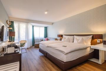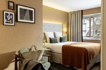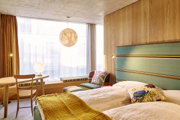 The 4* Hotel Marthof at the heart of Basel's old town is the perfect starting point for discovery tours and the place to be for fans of authentic city life. The 68 rooms and junior suites feature a free minibar, Nespresso machine with a coffee and tea set, Wi-Fi, telephone, TV, desk, rainfall shower and separate toilet. The roof terrace and in-house spa area with fitness room, steam room and sauna are available to all hotel guests. The Bohemia restaurant and bar and Boulevard terrace on the ground floor provide a view of the hustle and bustle of the Marktplatz or from the bar to the lively Eisengasse. The menu ranges from a quick espresso to a delightful dinner featuring specialities from the open charcoal grill and the generous à-la-carte brunch on Saturdays and Sundays.