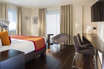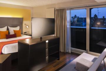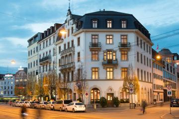 Adjacent a tram and bus stop, this city center hotel is also a 10-minute walk from the 9th-century Basel Minster church and a 13-minute walk from Kunsthalle Basel museum. The modern rooms and suites come with free Wi-Fi, flat-screen TVs, iPod docks, desks and minibars, as well as designer toiletries. Upgraded rooms add pull-out sofas, while suites feature panoramic-view terraces. Freebies include a breakfast buffet and parking. There's also an informal dining area. Other amenities include a contemporary lounge, a gym, a spa and a business center.