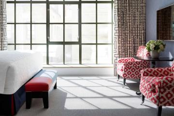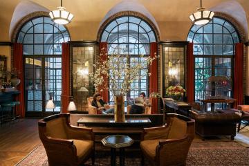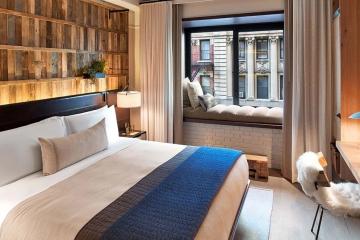 Tribeca is one of New York City's most under-the-radar neighborhoods, beloved by locals and plugged-in visitors who appreciate its proximity to SoHo, Greenwich Village and Wall Street, but love being away from the tourist troves. One of the area's biggest spokespersons is Robert De Niro, who spearheaded the Greenwich Hotel, a bold statement of handcrafted design. The work of numerous artisans from around the world is woven into the interiors, which feature such design details as leaded glass windows, exposed oak beams and antique wood floors. A mix of styles, from Tibet to Morocco, is featured in guest rooms, and some have working fireplaces. The hotel's gorgeous library, leafy courtyard, spa and pool are open only to guests, making even first-time visitors feel like they are bona fide Tribeca residents.