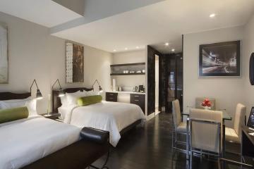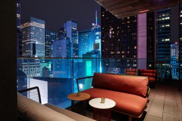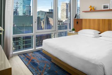 Experience Luxury At Our New York Hotel In Times Square. The Hyatt Centric Times Square New York puts you in the heart of one of the world's most vibrant cities, curating an intuitive, uncomplicated travel experience for the contemporary traveler. Immerse yourself in the culture of the Big Apple by staying steps away from renowned attractions. After taking it all in, settle into our stylish Times Square hotel, with enhanced bath amenities, redesigned, modern guestrooms and globally inspired culinary spaces. What You’ll Love: The prime location: Close to celebrated sightseeing, fine dining, high-end shopping, and myriad transportation options. Spacious guestrooms: 487 modern rooms average 364 square feet and are oversized compared to many New York City accommodations. Stunning views: Gaze out at the city lights from the rooftop bar and through your guest room’s floor-to-ceiling windows. Luxurious spa and salon: Pamper yourself at Times Square's only full-service spa, with a dry bar to primp for nights on the town. Innovative dining: Light breakfasts, quick lunches, or sumptuous dinners at T45, a chic bistro serving globally inspired shareable plates.